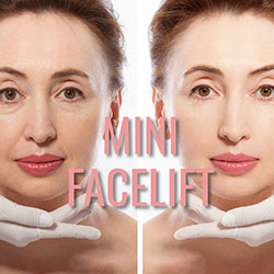 A mini facelift is a version of a facelift that concentrates on the cheek and jowls and is generally performed on younger patients than those who undergo a full facelift (that includes the neck). The procedure typically uses incisions inside and in front of the ears.